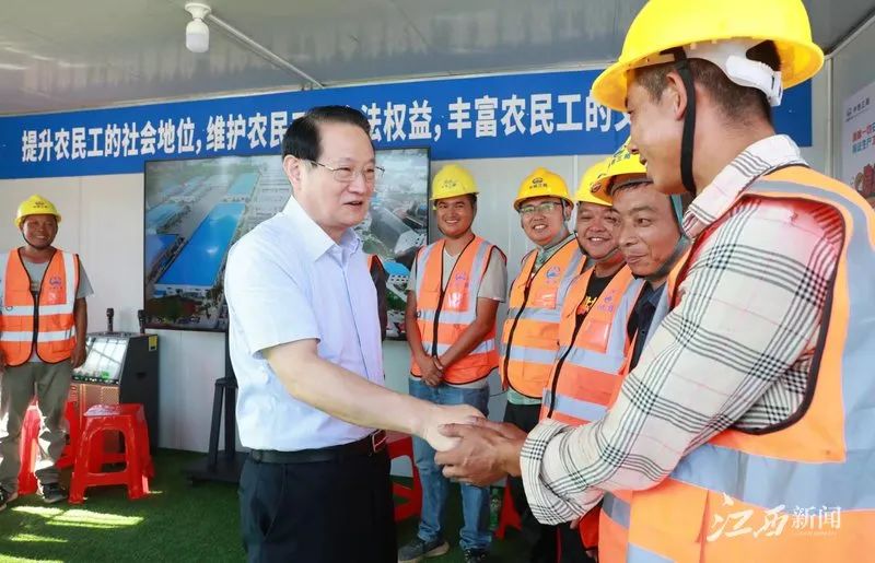 赤日炎炎,南昌洪騰高架項目現(xiàn)場一派繁忙,工程車來回進(jìn)行路面瀝青攤鋪,工人們正在揮汗如雨作業(yè)。易煉紅來到工地現(xiàn)場,向一線建設(shè)者們致以問候,感謝他們?yōu)槟喜鞘薪ㄔO(shè)作出的貢獻(xiàn)。他說,南昌是英雄城。大家來自全國各地,頂著烈日、不懼“烤”驗,揮灑的每一滴汗水、付出的每一份辛勤都是在為英雄城南昌的建設(shè)發(fā)展添油助力,你們是光榮的勞動者,也是在高溫下戰(zhàn)斗的“英雄”。易煉紅反復(fù)叮囑大家要保重身體,采取有效措施防暑降溫,注意自我防護、勞逸結(jié)合,以健康的身體投入緊張的工作。在現(xiàn)場,易煉紅還聽取了項目有關(guān)情況介紹,要求在確保質(zhì)量和安全的前提下,加快推進(jìn)項目建設(shè),確保早日建成通車。