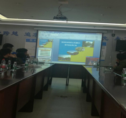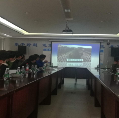 現場(chǎng)聽(tīng)取介紹昌九快速路工程概況以及目前的施工技術(shù)特點(diǎn)、難點(diǎn)及進(jìn)展情況;現場(chǎng)觀(guān)看了從泡沫混泥土施工工藝、大型橋梁的梁片、張拉、運輸、架梁等方面的效果視頻及深入細致的講解,工程的體量和技術(shù)難度讓人震撼。大家在認真觀(guān)看視頻后,不時(shí)地提出問(wèn)題請教,項目總監都一一進(jìn)行了解答。