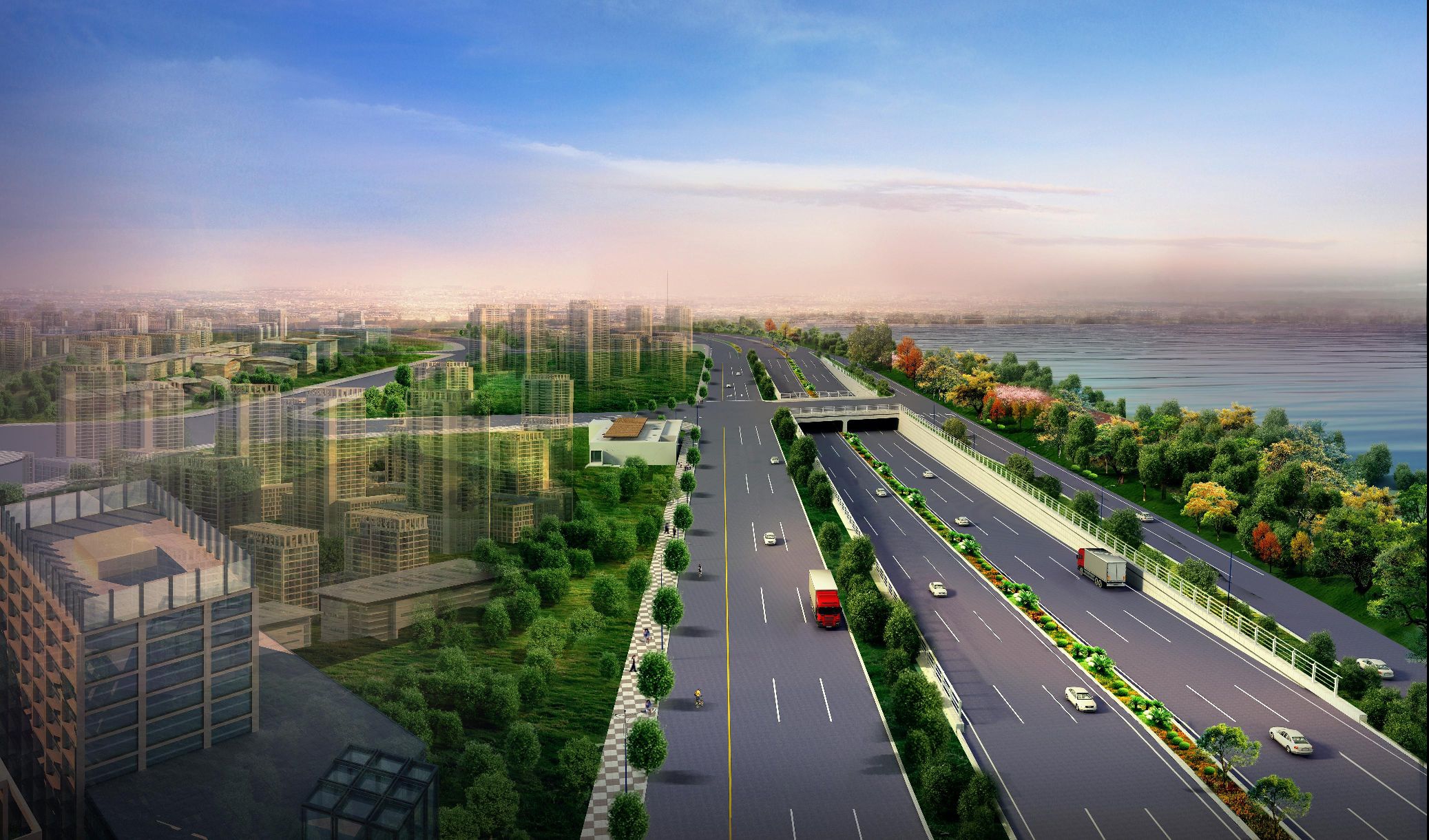 快速路和輔道根據現場(chǎng)采用綠化帶進(jìn)行調節,路幅寬度50m-60m。項目建安投資預計10.18億元。